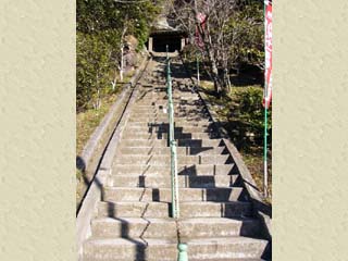 2010/1/14(9:18) 「崖の観音 観音堂」の中には、 「十一面観世音」がある。 「大福寺」のHPでは、「船形山の崖面中段に、 石龕(せきがん:石の厨子)をつくって像容を 浮彫りにした磨崖仏(まがいぶつ)で、 像高は131cm。舟形の光背を背に 二重蓮華座の上に立っている」とのこと。 |