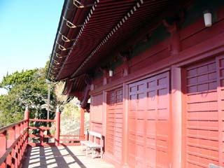 | 2010/1/14(9:17) 「お不動さま」から見る「崖の観音 観音堂」。 |