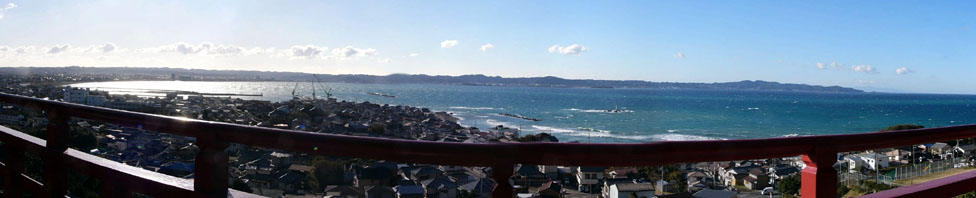 | 2010/1/14(9:19) 「崖の観音 観音堂」の舞台から見る景色。写真左が「館山市」の中心地付近。右奥は「洲崎」であろう。 |