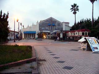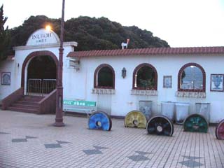 | 2010/9/22(17:44) 「銚子駅」と「戸川駅」の間6.4kmを走る 「銚子電気鉄道線」の「犬吠駅」駅前広場。 絵タイルの貼られたポルトガルの宮殿風建築の駅は、 1997年に関東の駅百選に選ばれている。 写真右に写るのは廃車を利用した「電車レストラン」。 |