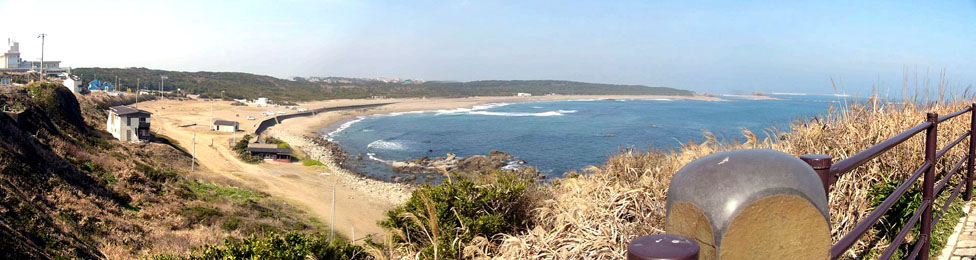 | 2010/2/25(11:59) 「犬吠埼」から見る「君ヶ浜」。 「君ヶ浜」は、日本の渚百選に選ばれ、関東舞子とも呼ばれる白砂青松の海岸で、「君ヶ浜しおさい公園」として整備されている。 |
