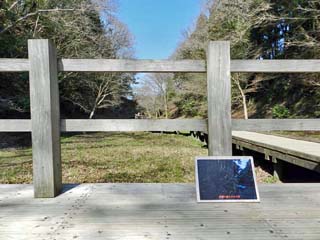 「木道」の最南端。 川原に降りれば、そこが「亀岩の洞窟」の 撮影スポットという位置にあり、「木道」は、