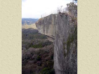 | 2010/2/3(14:47) 「山頂広場」近くで見る「地獄のぞき」。 オーバーハングになった岩の上には、 手すりが設けられ、展望台になっている。 |