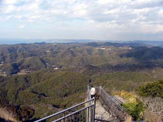 2010/2/3(14:57) 「山頂広場」にある「展望台」 地図を見ると「鋸山(標高329.5m)」の山頂は、 この場所から500mは東にある。 正確には「日本寺」の「山頂展望台」であろう。 |