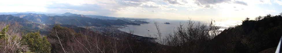 | 2010/2/3(14:55) 「山頂広場」から見る「保田」方向の景色。沖合いに浮かぶ小島は、勝山沖にある「浮島」。 |