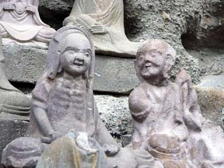 2010/2/3(15:20) 石仏は、よく見ると各々違う表情をしている。 写真は、二人で話をしているようでユーモラスである。 |