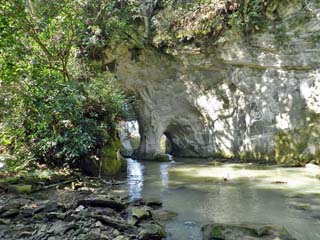 下流(東)側から見る「川廻しトンネル」。 この川原の石(岩)は、表面がヌルヌルと滑る。