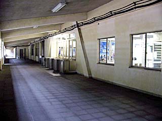 2010/10/8(11:49) 駅前の広場を出て、国道291号線から見る、 下り線地下ホームへの「連絡通路」。 |