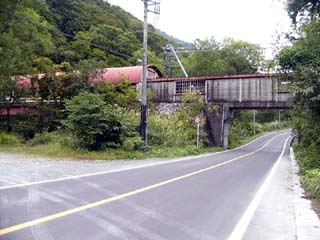 2010/10/8(11:17) 「土合駅」の下り線ホームに向かう。 「土合駅」の下り線ホームは、国道291号線を 跨いだ「新清水トンネル」の中で、駅舎からの 標高差で70mも下にある。 写真は、国道291号線の上にかかる連絡通路。 |
