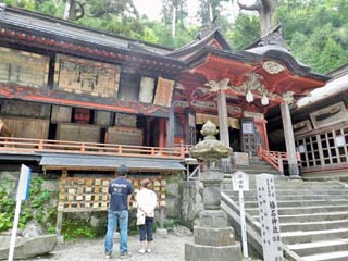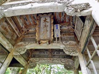 2012/6/24(15:02) 「随神門」。 「二ノ鳥居」を潜ると、すぐの所にある。 建物は、弘化4年(1847)の建造。 元は、運慶作と伝えられる仁王像が置かれていた が、神仏分離令により仁王像は焼かれ、現在は 明治39年(1907)に造られた随神像が祀られ、 門の名前も「仁王門」から「随神門」に変わる。