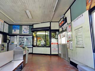 2014/9/28(14:49) 「旧川原湯温泉駅」の駅舎内。 鉄道の運行は終了しても、代行バスの乗車券販売等の 業務を行うため、駅舎内には駅員を置き、駅としての 営業は続けられていた。 写真をクリックすると「かわらゆ観光案内図」が 表示されます。 この案内図は、1,200x600ピクセルあります。 案内図の文字を読みたいときには、表示された画像を クリックし、スクロールバーをご利用下さい。 なお、この案内図の中にも注意事項として書かれて いますが、ダム建設に伴う移転前の地図ですので、 現状とは異なります。 |