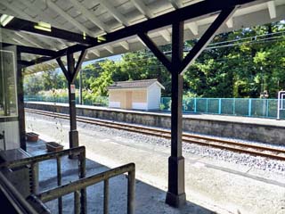 2014/9/28(14:51) 「旧川原湯温泉駅」のホーム。 ホーム上の待合室であったと思われる建物の、 入口扉、窓などは塞がれている。 なお、「旧川原湯温泉駅」の駅舎は、観光や地域振興 のため新駅の隣に復元、観光案内所やレンタサイクル、 足湯などを設ける計画だという。 |