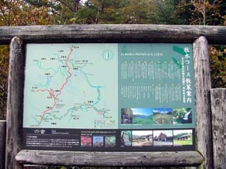 2010/10/27(9:34) 歌碑に刻まれた「枯野の旅」は、 「上野(かみつけ)の草津の湯より 澤渡(さわたり)の湯に越ゆる路 名も寂し暮坂峠」(詩の最後部分を抜粋)と、 「暮坂峠」の素晴らしい景観に感動した 「牧水」が残したものである。 |