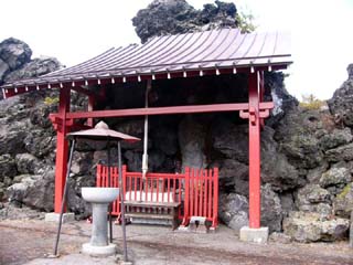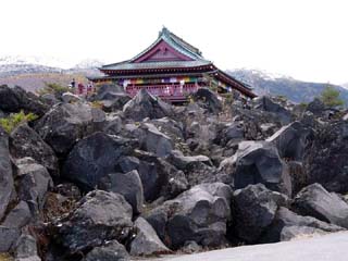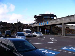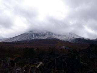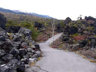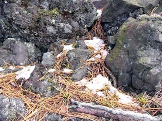 2010/10/27(11:54) まだ、10月下旬だというのに、何日か前に 降った雪が溶岩の上に残っている。 |