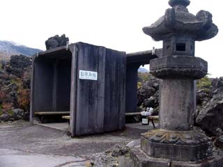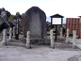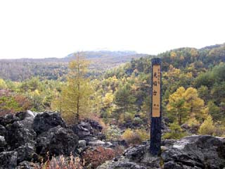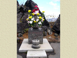 2010/10/27(12:27) 「高山コース見晴台」にある「供養塔」。 昭和45年建立。 これも、天明3年(1783)「天明大爆発」の犠牲と なった霊を供養するために建てられたという。 |