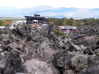 2010/10/27(12:30) 上のパノラマ写真と同じ方向を、カメラを少し下に向けて撮影。 この辺りを、溶岩が幅広く流れたことが分かる。 |