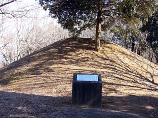 2011/2/1(11:51) 「富士見塚古墳1号墳(前方後円墳)」。 全長80.2m。一番大きい前方部の幅が49.4m。前方部頂上付近からは、複数の遺体が埋葬された石棺が出土し、墳丘の形態や埋葬施設、 出土遺物等から、5世紀末から6世紀初頭に造られたものであろうといわれる。 写真左が「後円部」で、上から見た時に「円形」に見える部分であり、埋葬のための墳丘といわれる。 右が「前方部」で、上から見た時に「方形(四角形)」に見える部分であり、死者を祀る祭壇とする説や葬列が後円部に至る墓道であったとする 説があるが、後の時代には「前方部」にも埋葬されているとのこと。 |