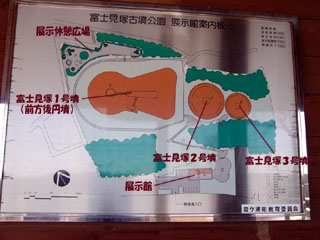 2011/2/1(12:11) 「富士見塚古墳展示館」の外にある案内図。 罫線と罫線の先にある文字は、本HPのために 付け加えたものです。 |