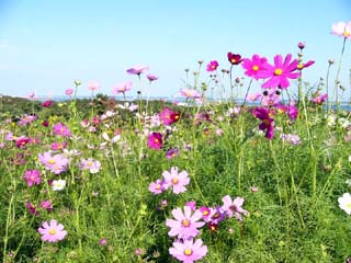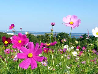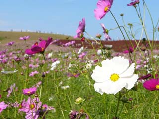 2010/10/16(13:42,13:43,13:58) 秋の「ひたち海浜公園」の、もう一つの主役「コスモス」。 「みはらしの丘」に咲く「コスモス」の品種は、主に「センセーション」と「秋咲き大輪」である。 「プレジャーガーデンエリア」にある「中央フラワーガーデン」では、これらの品種とは異なる「コスモス」を見ることができる。 「中央フラワーガーデン」の「コスモス」は、「ひたち海浜公園(その他)」のページで紹介しています。 |