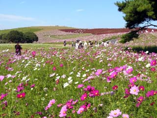2010/10/16(13:47) 「みはらしの丘」全体の景色。 春の「ネモフィラ」は、すっかり「コキア」と「コスモス」に入れ替わっている。 注:写真は、横が1,400ピクセルあります。写真直下にあるスクロールバーをご利用ください。 |