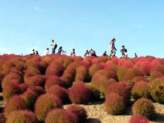 2010/10/16(13:46,13:48) 「みはらしの丘」の「コキア」。 「コキア」の紅葉は、10月の上旬~下旬。この日は、丁度見ごろであった。 また、夏の「グリーンコキア」も素晴らしいと聞く。 |