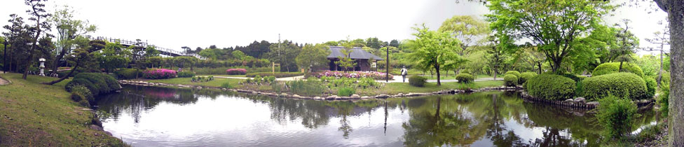 2010/5/14(11:18) 「吐玉泉」を南に降りた所にある「池」。 左に写る「橋」は、「梅桜橋」。橋を渡った先は、「偕楽園」の「拡張部」と呼ばれ、「梅林」の他、「護国神社」「徳川博物館」等がある。 |