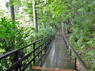 「もみじ回廊」は、「不老池」の縁に沿って 池の奥へと向かう。 |