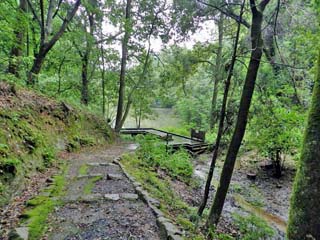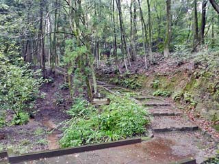 「回廊」が終り、この坂を上がれば、 「助さんの住居跡」である。 |