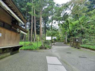 「西山荘入口」。 左の建物「西山荘管理事務所」でチケットを購入。 「西山荘」の敷地内に入る。 |