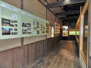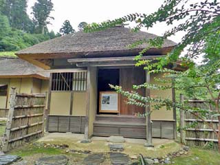 「西山荘守護宅」。 「西山荘」の裏庭に立つこの建物は、 当時、西山荘を守護した侍達の居宅を復元したもので、 「資料室(博物館)」として使用されている。 |
