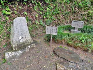 2016/10/1(11:05) 「お胞衣塚」。 案内版の右に立つのが、光圀公の「お胞衣(後産)」を