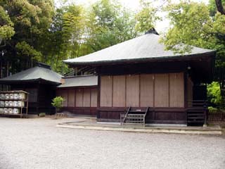 2010/5/14(10:56) 「常盤神社社殿」。 明治初年、偕楽園内に祠堂が創立され、 明治6年(1873年)、勅旨をもって「常磐神社」の 社号を賜る。比較的、近代に建てられた 新しい神社といえる。 明治7年現在地に建てられた社殿は、 昭和20年8月戦災により焼失。 現在の建物は、昭和34年に建てられたもの。 |