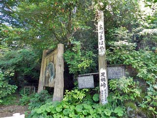 2015/9/15(13:20,13:21) 「あづまやはや」の標柱と「足柄の関」。 「足柄峠」は、静岡県(駿河国)と神奈川県(相模国)の県(国)境にある峠で、鎌倉時代になり、 箱根道が開かれるまでは、官道・公道として利用されていた峠道で、「倭建命(日本武尊)」が、 東征の帰路、荒波を収めるため波間に身を投じた「弟橘媛」を思い「あづまはや(あゝわが妻よ)」と 嘆き悲しんだという場所である。 「足柄の関」は、昌奉2年(899)、足柄坂に出没する強盗団(僦馬の党)を取り締まる目的で設置されたのは、 史実のようであるが、実際の場所や形状は定かではなく、以前は、黒澤明監督の映画「乱」で使われた門が 関所として置かれていたのだが、その門も、いつの日か取り外されたようである。 左の写真をクリックすると案内板「倭建命(日本武尊)」が表示(800x600)されます。 右の写真をクリックすると案内板「古代の足柄の関」が表示(800x600)されます。 |