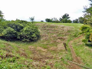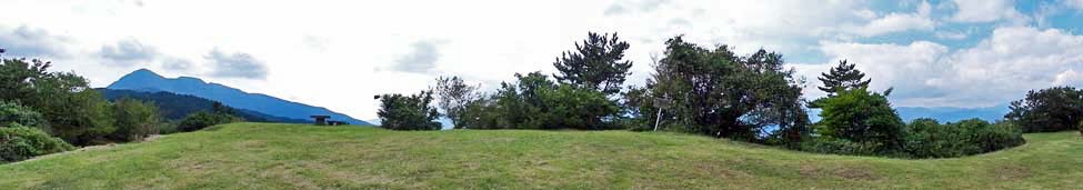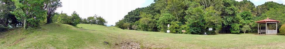 2015/9/15(13:44) 「三の郭」から見る「二の郭」。 間にある窪みが「空堀跡」。 「三の郭」の先には「四の郭」「五の郭」と続くが、 この日は「三の郭」でUターン。 |