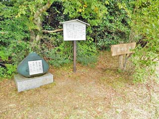 2015/9/15(13:30) 「笛吹塚(新羅三郎義光吹笙之石)」。 「八幡太郎義家」の弟、「新羅三郎義光」は、 名人「豊原時元」に学んだ「笙」の秘曲を後世に 伝えようと、この「大石」の上に座り「豊原時元」の子 「時秋」に「笙」の奥義を伝えたとある。 写真をクリックすると案内板「足柄山 笛の調べ」が 表示(650x600)されます。 |