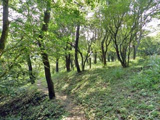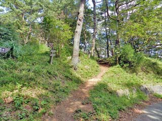 公園東側の道を進む。 ほとんど高低差はなく、雰囲気の良い道だが、視界はなく、遠くの景色は望めない。 |