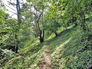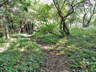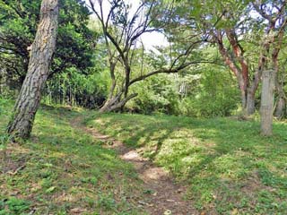 なお、この写真は、右の方向を撮影したものだが、 この道は、利用する人が少ないようで、道は草で 覆い隠されている。 |