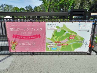 「里山ガーデンフェスタ」正面入口。 「里山ガーデンフェスタ」は、横浜市の西部に位置する旭区と緑区に跨がる 「横浜動物の森公園」の中にある植物公園の予定地(よこはま動物園ズーラシアに隣接する森)で 開催されている花のイベントである。