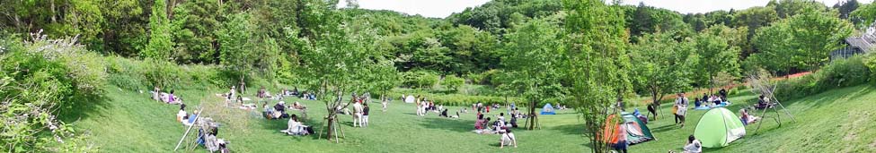 「ピクニック広場」。 祝日のこの日、テントを張ってくつろぐ人の姿も見られた。 |