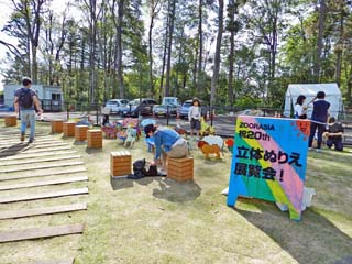 「立体動物ぬりえ」の展覧会。 ズーラシア開園20周年を記念した ワークショップで制作された作品が、