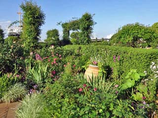2022/6/12(16:53,16:56,16:56) 「沈床花壇」。 「昔からのバラ」と「新しいバラ」。ローズポールやローズゲートの「つるバラ」と「スタンダード仕立てのバラ」等々。 四季折々に咲く花を楽しむことができる花壇である。 |