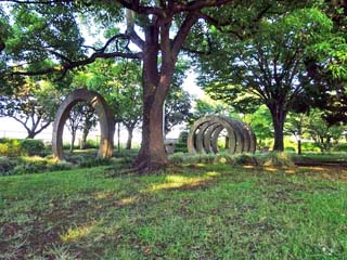 2022/6/12(17:08) トンネル状の「オブジェ」。 「世界の広場」を海側に出たところにある。 写真をクリックすると正面から撮る「トンネル」の オブジェが表示されます。 |