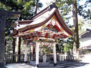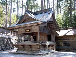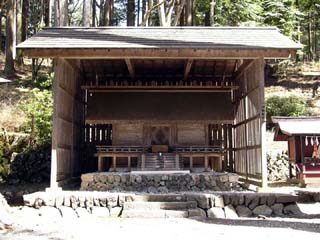 2010/4/14(10:52) 神楽殿。 三峯神社の神楽は、その巧妙な撥さばきによって 宮本武蔵が二刀流を開眼した(吉川英治著 小説 宮本武蔵)と伝えられる。 |