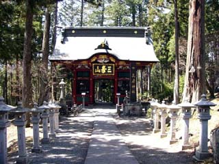 2010/4/14(11:21) 遥拝殿(鳥居の中に見える建物)。 妙法ヶ岳山頂にある奥宮を遥拝するための場所。 |