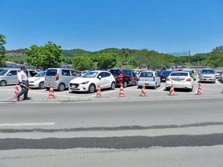 2019/5/8(11:00) 「西ゲート」前の常設駐車場。 「正面ゲート」と「西ゲート」前にある常設の 無料駐車場は、大型40台 普通車300台が 収容可能だが、「藤の花」の開花時期で、 この時間では、既に満車の状態であった。 |