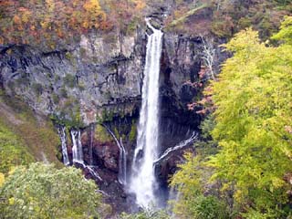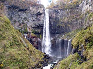 2010/10/26(14:02) 有料の「観瀑台」から見る「華厳の滝」。 「華厳の滝」は、中禅寺湖から地表を流れる唯一の流出口「大谷川」にある滝で、その落差は97m。 茨城県の「袋田の滝」、和歌山県の「那智の滝」と共に日本三名瀑のひとつである。 |