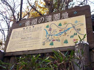2010/10/26(14:38) 「竜頭の滝」下流側入口近くの案内板。 「竜頭の滝」は、湯川の末流にかかり、奥日光を 代表する滝で、「華厳の滝」、「湯滝」と共に 奥日光三名瀑のひとつとされている。 |