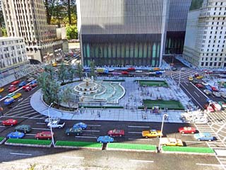 ここに再現されているのは、高層ビルの下を潜る 高速道路である。 |