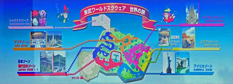 2022/11/2(9:06) 「東武ワールドスクウェア」の入口にかかる園内マップ。 「東武ワールドスクウェア」は、日光宇都宮道路「今市IC」から国道121号線を鬼怒川温泉方面(北)に 約12km(20分)走ったところにある「世界建物博物館」である。 園内には、世界文化遺産を含め、世界の有名な建物や遺跡などを含め、22の国と地域、100点を越える 建造物を25分の1の縮尺で精巧に再現されている。 1/25の縮尺とはいえ、「東京スカイツリー」の高さは約26m、制作には1年をかけ、費用は2億円という。 また園内には、展示物の大きさに合せた約2万本の盆栽や14万体の人形が雰囲気を盛り上げており、 世界一周の旅を1日で巡ることのできるテーマパークである。 本ページでは、令和4年(2022)11月時点で展示されていた全作品を、ガイドブックに書かれる順に紹介します。 上の画像をクリックすると「東武ワールドスクウェアをつくろうと考えた想い」などについて書かれた案内板が表示されます。 表示される画像は、1,200x566ピクセルあります。 案内板に書かれる文字を読みたいときには、表示された画像をクリックし、スクロールバーをご利用下さい。 |