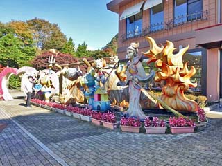 61.「故宮(中国)」。 写真左方には、記念撮影用の等身大「兵馬俑」が立つ。 |